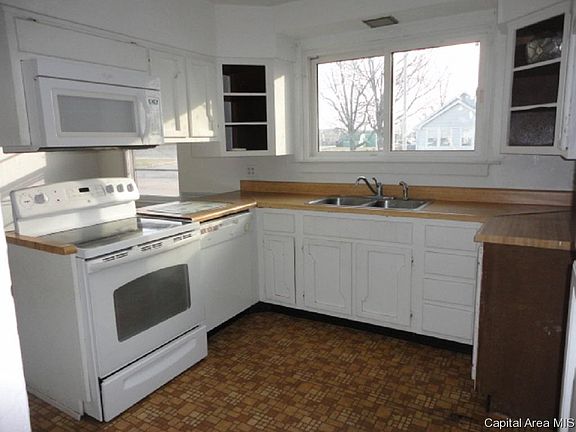 1 1/2 story four bedroom home with 1400+ square feet. Nice sized rooms. Newer stove, microwave and dishwasher. Hardwood floors. High efficiency gas furnace. Full basement. Chain link fence. 1 1/2 car attached garage. Breezeway and covered patio. Lots of potential. Double corner lot.