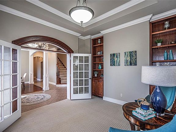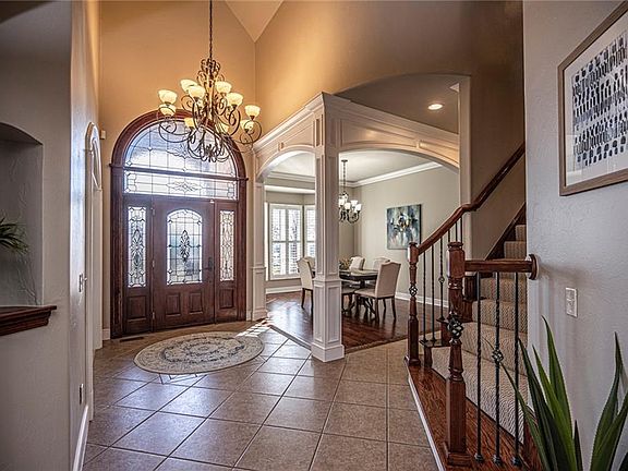 Wonderful family home in sought after Oaktree Park in Edmond. Fresh interior & exterior paint & brand new carpet throughout. Stunning entryway with elegant leaded glass doors and eyebrow window creates a bright welcoming entry. An open great room provides the perfect place to gather w/friends & family while a cozy den & 2nd dining room offers addtional space for entertaining. The kitchen will ignite your inner chef w/gas cooktop, double ovens, prep island w/2nd sink & an amazing pantry. A butler's pantry connects the kitchen & 2nd dining. The primary bedroom has a spa-like ensuite bath w/double vanities & TWO huge walk-in closets. Sharing a pass thru fireplace w/the primary bedroom is the perfect little office or reading room. Upstairs has 5 rooms. A bedroom w/ ensuite bath, 2 sharing a true Jack&Jill bath, a theater/game room & a flex room that could be a 5th bed or 2nd bonus. The backyard boasts tons of patio space, a lovely pergola & outdoor kitchen for the outdoor entertainer.