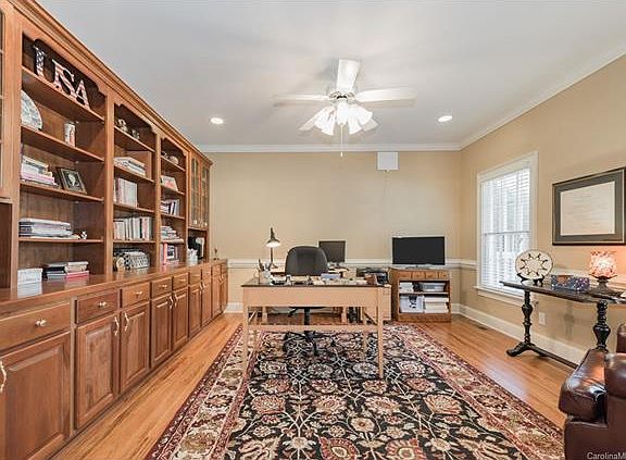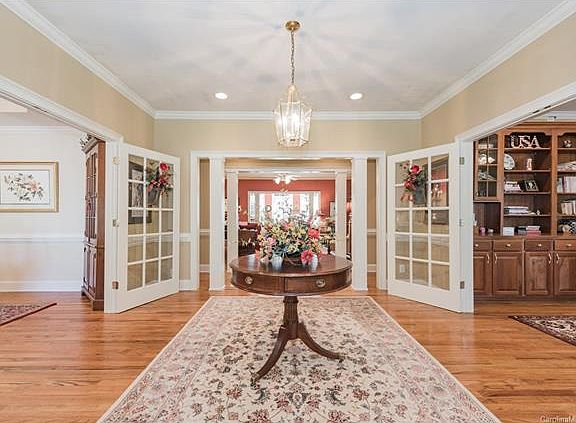 This is a spectacular waterview home with a covered front porch. The open foyer greets the office and the dining room with adjacent french doors. The office and greatroom have built-in shelving and cabinetry. The kitchen has granite countertops, two disposals, an island with gas cooktop and built-in microwave and oven. The master bathroom features a jacuzzi, a large separate shower and dual vanities. The secondary baths have dual sinks. The sunroom features skylights for lots of natural light and ceramic tile. Hardwood flooring is located throughout the main level. The large private backyard has a concrete patio perfect for entertaining.