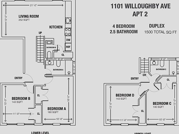 *Please email all tour inquiries.* Welcome to 1101 Willoughby Ave, Unit 2 a bright and well-laid-out 4-bedroom, 2.5-bathroom duplex in the heart of Bushwick, Brooklyn. Perfect for roommates or anyone looking for extra space, this home offers both comfort and convenience in one of the neighborhood's most desirable locations. Apartment Features: Spacious duplex layout Four equal-sized bedrooms, each with a window Two full bathrooms plus a convenient powder room for guests Smart layout ideal for co-living or working from home Pet-friendly (upon approval) Building Amenities: Shared laundry room Bike storage Furnished roof deck with great neighborhood views Located near the Jefferson St (L) and Central Ave (M) subway stations and a few blocks away from Maria Hernandez Park, this apartment puts you in the center of Bushwick's vibrant arts, dining, and nightlife scene.