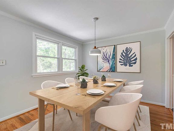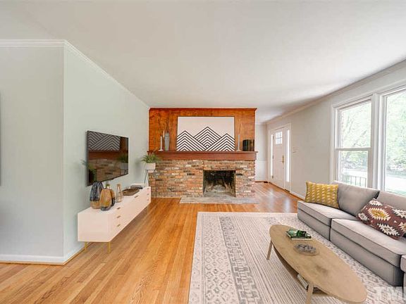 Bright & airy plan with fresh interior paint, gorgeous refinished hardwoods & stylish updates. Renovated kitchen features butcher block counters, modern tile backsplash & abundant storage. 3 bedrooms & sunny study give you flexible space. Relax by the cozy wood fireplace inside, or head to the fenced backyard with plenty of room for gardening, pups & play. Large corner lot in unbeatable locationâ close to University Mall shopping & easy commute to UNC, Duke & RDU. Optional pool in neighborhood! 3D Tour!