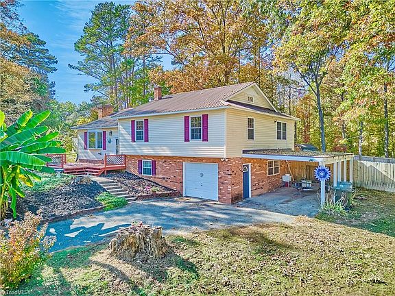 This lovely split-level home in a great neighborhood features a large living area with a large, beautiful fireplace. vaulted ceilings with exposed beams, bay window with seat and storage, and a pass through to the kitchen, The kitchen has beautiful oak cabinets with lots of storage, granite countertops, tile floors, with stainless appliances that remain. 3 large bedrooms and 2 baths with granite tops on the double vanities. The downstairs has a large bonus room with half bath, perfect for entertaining. It has a painted mural of the Avengers on one wall. Paved driveway and a one car garage with a fenced-in back yard, and large closed in porch. This home is sitting at the end of a cul-de-sac. Convenient to Greensboro, Asheboro, Mega site, shopping and medical facilities.