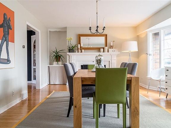 This mid 20th century Contemporary home sits on a remarkable DOUBLE lot. It boasts a stately brick facade with a recessed front entry. The interior will impress you with open thresholds & waves of natural light! The layout adapts nicely to a variety of uses & situations. You'll love the way these rooms flow. The front room features a massive bow window that looks west. There's an eat-in kitchen w TONS of cabinets & counter-space. The Family rm is huge and yet still super cozy. Step outside from the dining area onto a deck. Walk down into a lovely, patio & pool area. There are terrific bedrooms and full bathrooms upstairs AND down. First floor OR 2nd floor master. You choose! Luxurious There are 2 rms + a very nice powder rm in the walkout lower level as well! You'll love the flexibility!