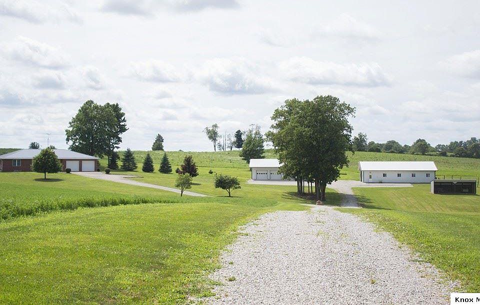 Perfect opportunity to own 70 acres with beautiful brick ranch, pull in the driveway and it opens to a scenic view of the farm with a large pond and well groomed grounds. Main barn has 8 horse stalls with tack room and concrete hallway. Large barn doors on each end to drive horse trailer through. Three car garage and equipment storage building. Two three sided buildings in fields used as run in for horses. Home features 2 bedrooms on main level and a 3rd bedroom on lower level. Kitchen and dining area combo is 14x25 with beautiful oak cabinets, pantry and lots of counter space, new vinyl plank flooring just installed. Sliding glass door from the dining area leads to large deck. Living room is large enough to entertain friends and family with a picture window and a door that leads to a covered front porch. Full basement with family room, area for a bar, bedroom, and lots of storage. Over sized 2 car garage has lots of storage. Almost all of the land is tillable with few acres of woods.