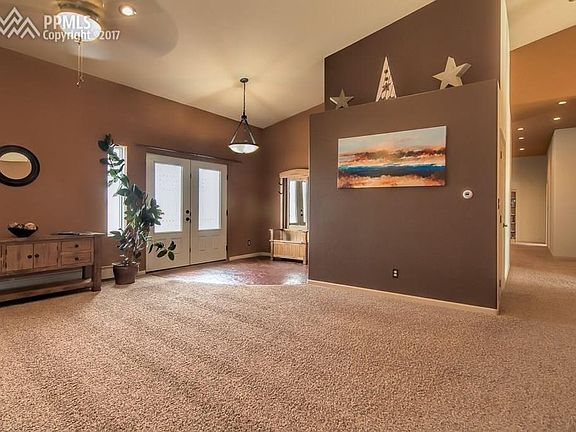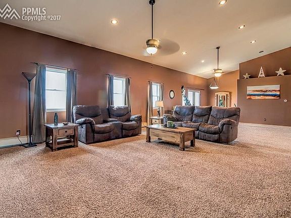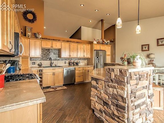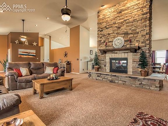 Beautiful updated horse property on 40 fenced acres zoned A-35 with no covenants-4000 SF rancher all on one level-new items: Roof- kitchen flooring- 30X25 double door garage with a stucco exterior,two 9X8 overhead doors & garage door openers- boiler & radiant heat circulation system,gutters,exterior paint,interior paint- Vaulted & 10 ceilings throughout-Remodeled gourmet kitchen with stainless steel appliances,travertine natural stone tile countertops,travertine & mosaic tile back splash,,natural finish cherry cabinets with crown molding,walk in pantry,island,countertop bar,eating area. - Dramatic floor to ceiling stone faced double sided gas log fireplace between great room & dining room. Large master suite with sitting area & a five piece master bath with an oversized jetted tub & 6X4 walk in natural stone travertine tile walls & floor-2X6 framing-84X35 seven stall pole barn with fenced wrap around corral-2 stained concrete patios-seasonal creek-duck pond-Sweeping mountain & Pikes Peak view-Excellent Condition-great property with a true Colorado feeling