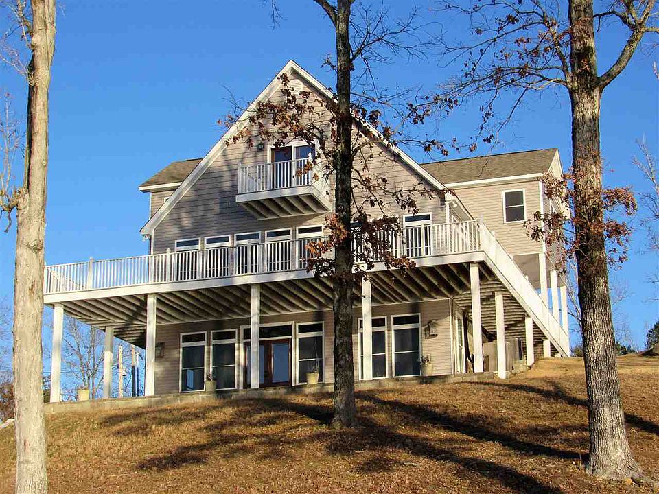 Reduced, Owner says Sell. Beautiful waterfront home in Bear Creek. Permitted for a boat dock . 4 bedroom/3 bath home has all the extras a custom built home should have. Hand scrapped hardwood flooring, custom cabinets in the kitchen and baths. balcony off one bedroom. Three have water views and so do 2 baths. Main level has a one bedroom. 2 bedrooms and office on upper level. Den with kitchenette, bath and bedroom on lower level with 2 car garage. Trex decking all around the home. 3-D tour