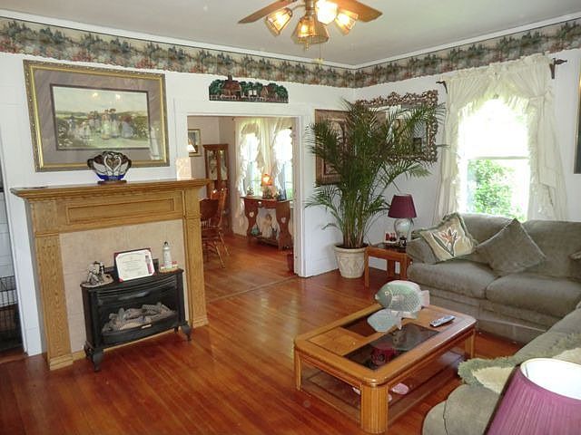 Classic Home-Private & Beautiful on Large 1-1/2 Acre Park-like Lot in Great Location! Country Living w/ City Convenience - Old Growth Trees. Over 1,700 Square Feet 3 Bedroom, 1 Bath with 9'+ Ceilings & Hardwood Floors thru-out 1st Floor features Large Living Room w/Gas Fireplace, Dining Room w/Original French Doors. Spacious 1st Floor Master Bedroom, Nice Size 2nd Bedroom, 569 Sq Ft 2nd Floor 3rd Bedroom can also be Bonus Room. Large Windows & Roof replace in '05, Updated Plumbing, Some Electrical Updates, Maintenance-Free Vinyl Siding. Classic Front Porch w/ Columns. Back Deck for Entertaining. Fenced backyard & Invisible Fence Wiring in place. Large Shed can be Workshop; Many Outbuildings for Storage. Location, Location, Location - 5 minutes to VA Center Commons