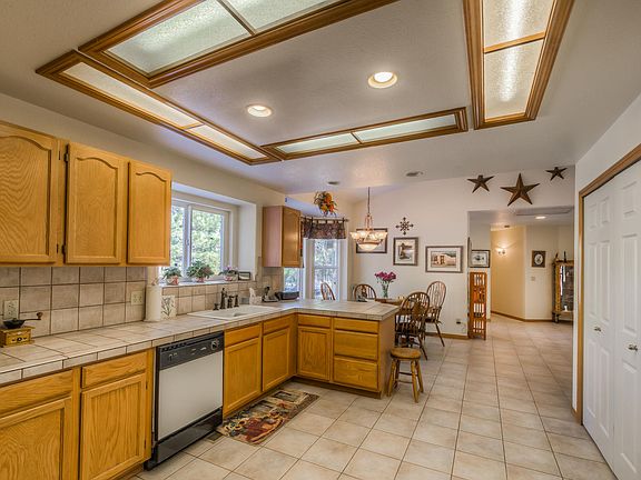 Welcome to country living. Nestled back in the trees on 40 acres this recently updated home is the perfect retreat. New kitchen cabinets, quartz countertops, oversized kitchen island, smart 36 inch gas range and new tile all installed in 2022. All buildings were painted, new carpet and a high impact roof installed in 2020. There is a back up generator with the essential circuits hardwired for house. Skylights offer all day natural lighting. The woodburning stove is a Blaze King and very efficient. The property is fenced and crossed fenced. Meadow area is approximately 5 acres and has a small dirtbike track. There is an automatic stock water tank and lean to. Enjoy the deer and elk as the pass through while sitting on your 12x24 covered deck. Large garden and 2 greenhouses were not planted this year but have produced enough in the past to share at the farmers maret in Elizabeth. There is a round pen and lean to for horses. You will fall in love with the peace and quiet of this home.