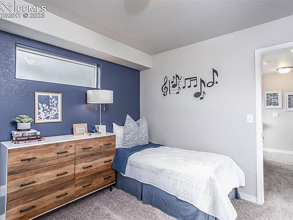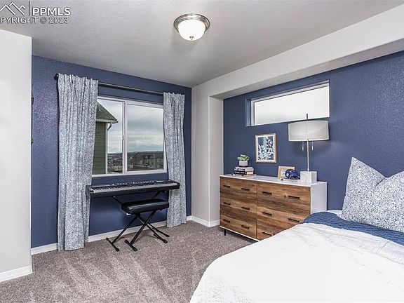 Brand new Torrey plan! 3 bedrooms plus a MIL suite on the ground level. The Torrey features great use of space across three levels. An oversized garage is ideal for storage or workshop. Upon entry, there is a junior suite with a large bedroom, walk in closet and adjoining bath. On the second level, an open concept family room expands to the kitchen and dining room. This level features LVP throughout and spacious 9' ceilings. The kitchen includes stainless appliances with a gas range, quartz countertops and beautiful subway tile backsplash. A powder room off of the family room provides convenience along with a walk in pantry. On the third level, two spacious secondary bedrooms and a bathroom are on one wing with a small loft space. On the other side, a large primary bedroom along with an ensuite bath and walk in closet. Full landscaping and fencing included along with complete AC. This home backs to open space with incredible views of Pikes Peak!