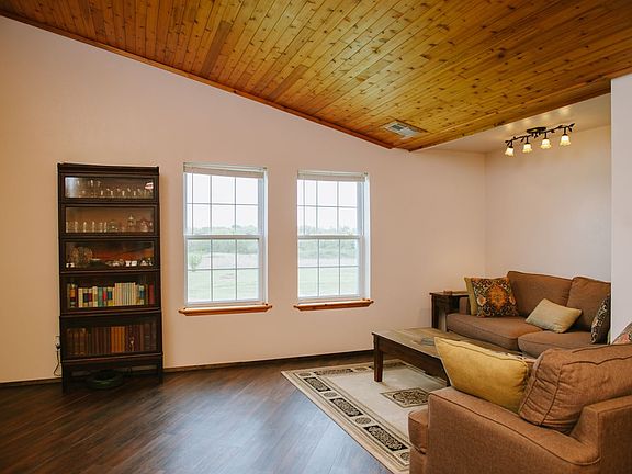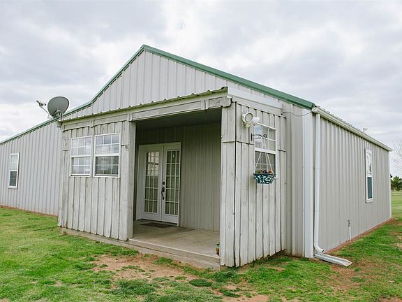 Big sky country! 18 peaceful acres, mostly grass hay meadow with creek and tall trees on the south part of the property. Fenced on 3 sides, no through traffic. Well insulated, charming rustic metal home. Vaulted wood-plank ceiling in living room, under counter lighting in open kitchen. High efficiency Trane heat pump. Over-sized single car garage for storage plus a carport. Small barn with electricity and concrete floor. Storm shelter. New roof 2018. Seller does not own mineral rights.
