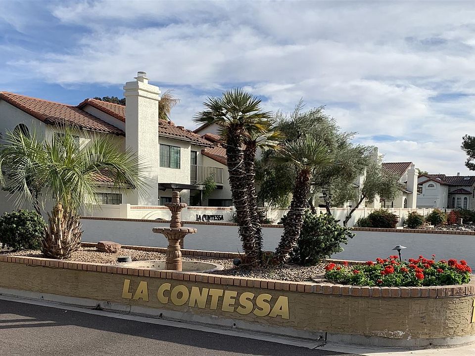 OWNER/AGENT.MUST SEE !! MOVE IN READY!! Stunning home in a desirable gated community.Bright and spacious floor plan with wood laminate floors and tile throughout, upgraded kitchen offers granite counters, breakfast bar and white cabinets. Fireplace and private balcony, 2 generous size bedrooms with large closets, interior laundry.La Contessa features: Clubhouse, Community Heated Pool, Spa, Fitness center, Racquetball and Tennis. Convenient location for Shopping, Dining, and access to Freeway.