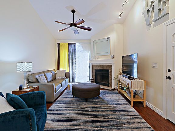 One of a kind, updated unit. Walk in to find that the wall has been removed between the spacious kitchen and living room creating an inviting great room with soaring ceilings. Gorgeous kitchen with plenty of storage, custom stained concrete countertops, and stainless appliances. Two balconies to enjoy the beautiful weather, cozy fireplace and attic storage make this an easy to love condo. Located in gated La Contessa with heated pool and spa, workout facility, tennis court, indoor racquetball court, and clubhouse. Minutes to the loop 101, dining, shopping, and entertainment. One pet under 35 lbs per CC&Rs.