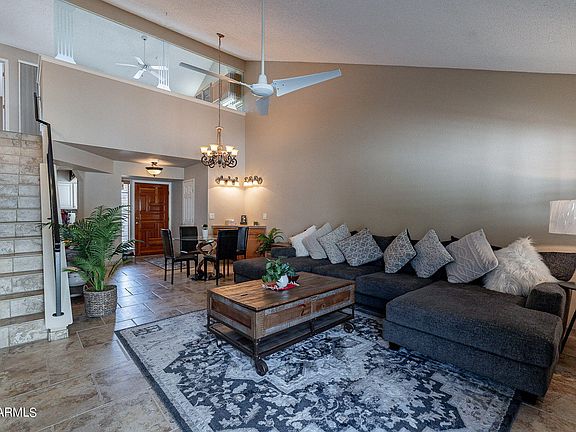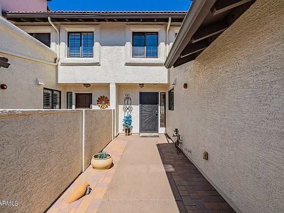 Welcome to this beautifully upgraded 3-bedroom, 2.5-bathroom condo in a gated Scottsdale community, offering a prime location and modern living. The master bedroom is conveniently located downstairs, with tile flooring throughout the spacious living area. The open floor plan includes a loft and two separate balconies, providing plenty of space for relaxation. The easy-maintenance turf backyard patio and private front courtyard are perfect for outdoor enjoyment. The upgraded kitchen features quartz countertops, soft-close cabinets, and pull-out shelves. Additional features include a 2-car garage and a water softener. Located near the 101 Freeway, shopping, restaurants, and entertainment, close proximity of 1 block to the Shea Honor Health Hospital and Virginia Piper Cancer Center! This home is perfectly situated for convenience. All furniture is available for purchase on a separate bill of sale.
