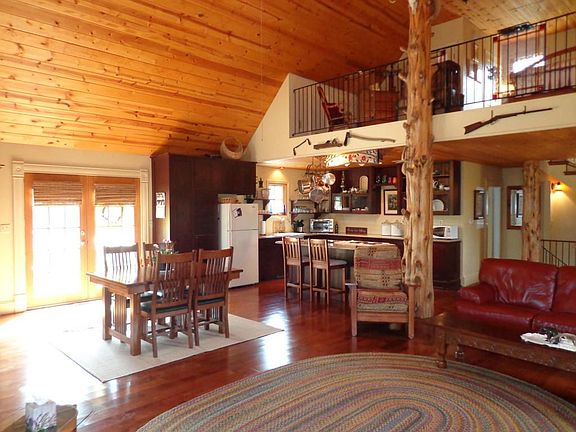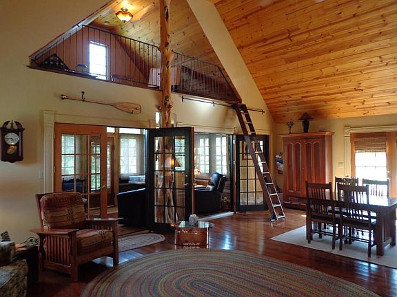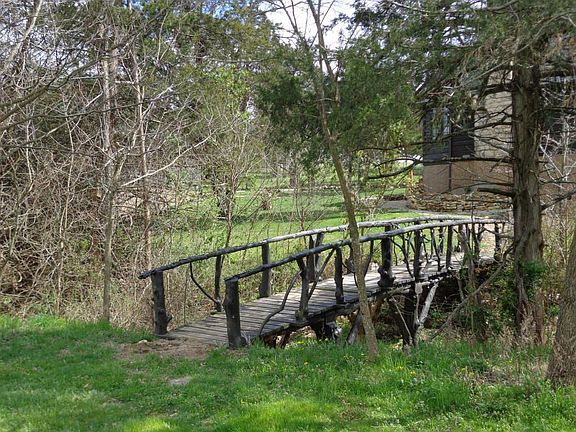 Private chalet on 10 gorgeous acres! Your oasis does exist just 10 miles north of Springfield. Some of the stone & logs were hand picked from turn of the century properties to build this showplace! Just like a lodge, invitingly open with exposed lofts & beams with the fireplace as the heart of it all. Granite counter tops, pharmacy cabinets, & roll outs highlight the kitchen. The study/den serves as a front porch behind french doors. The detached oversized 2 car garage has permanent stairs to a floored attic & is plumbed for a 3rd bath. A beautiful bridge crosses the creek & leads to a corral for the horse & a storage shed/chicken coop. The machine shed has a carport & lean too. About 5 acres are pasture the rest landscaped, treed & completely fenced. Truly one of a kind!