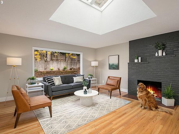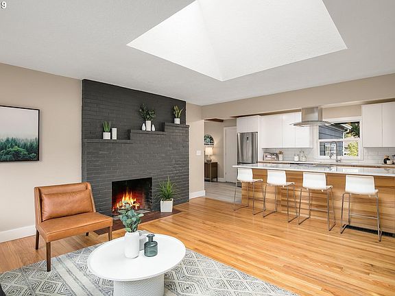 Great vibes at this spacious Mid-Century Modern ranch impeccably restored, reimagined, and modernized. Bright and airy open layout kitchen/living/dining with skylights and fireplaces. Master suite on main. Finished lower level with separate entrance and large living room + fireplace, generous bedroom, full bath and laundry. Large garage. New plumbing, electrical, furnace, solid wood doors. Fenced yard, covered patio, lawn. Great vibes! [Home Energy Score = 6. HES Report at https://rpt.greenbuildingregistry.com/hes/OR10135230]
