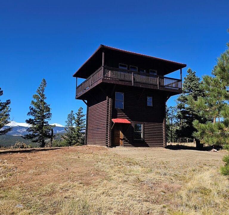 Broker owned Handyman Special!! Park Ranger feel to this perfect getaway log cabin sitting on 35 acres!! Take it ALL in from Teresa's View at 8,800 feet on the upper edge of Cimarron Ranch. Million dollar 360 views of the snow-capped Sangre de Cristo's, both Spanish Peaks, Fishers Peak & Raton Mesa!! This 1,000+square foot 3 story log cabin shell is perched on the south side of this wooded 35 acres. Two electric panel meters/hookups are installed on the property. One panel at the cabin, the 2nd panel at the campsite. Ready to go campsite located on the north end of the property with power for your guest's RVBrand new metal roof and wrap-around top floor observation deck. Entire exterior professionally restored and stained. Amazing sunsets await you! Stargazing will be a nightly ritual from this solitude location! Located approximately 45 minutes from the towns of Weston or Aguilar. Covered in tall pines just waiting for your final touches. Priced at $249,000.