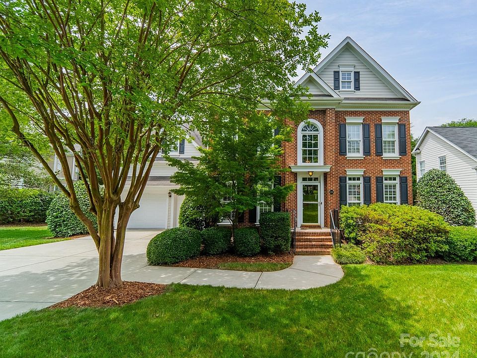 Welcome to your Retreat in the Chatham Neighborhood! Two-story Foyer with balusters on the staircase, Crown Molding and Hardwood Floors throughout the main level. Formal Dining room with transom windows, Plantation Shutters, and wainscoting. Main level guest suite with French doors and full bath. The Kitchen is off the Dining room w/Maple Cabinets, tile backsplash stainless appliances w/built in Double Ovens, and Gas Cook Top, open to the Breakfast area and Great Room. The Beautiful Great Room has Natural Light with Plantation Shutters and a Gas Fireplace with a walkout to a Gorgeous Sunroom and deck overlooking the private backyard. Great for entertaining your family and friends. Upper level: Owners Suite with trey ceiling, private ensuite, double sinks, separate tub/shower, tile floors and dual walk-in closets, 3 additional bedrooms full bath & a bonus room/bedroom. Property Backs up to The Tradition Golf Course, Close to I-485, Shopping and Restaurants.