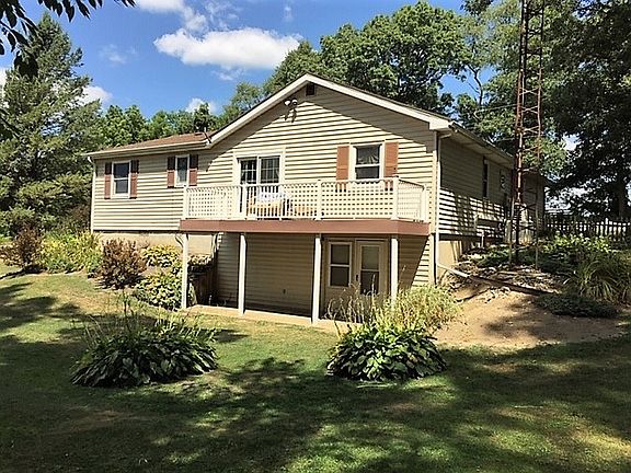 1624 above ground sq. ft. ranch home with 446 finished in basement and 8+/- acres. Around the corner from beautiful Bruce Lake for fishing, swimming and boating activities. The landscaping around the house is awe inspiring with many perennials that will continue to bloom every year. The house has 4 bedrooms and 3 bathrooms, including in the master bedroom and a Jack & Jill bath between 2 of the other bedrooms. Rustic wood trim. Large 8X4 walk in pantry. 15X10 shop and storage in the basement. 28X6 vinyl balcony overlooking the country side. 20X8 deck in the front of the house surrounded by flowers. Detached garage is 24X24.