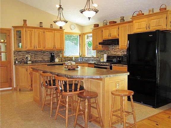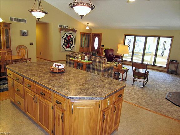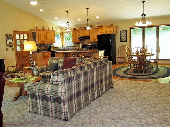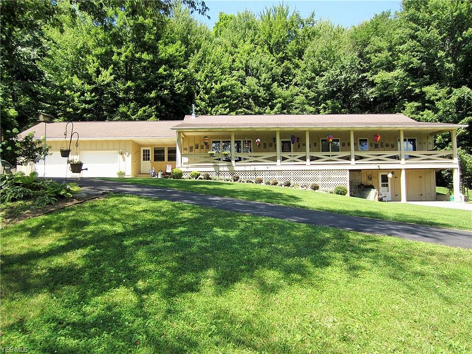 Just WOW! You will absolutely fall in love with this amazing cedar sided ranch style home! This property is on 2.29 beautiful acres and is ready for a new home owner... The full length front porch will steal your hearts! You'll love the open floor plan and wall of windows of the Great Room with wood burner, Eat-In Kitchen with island, and dining area which features hardwood floors. Off to the right of the dining room is the large first floor laundry room with storage cabinets and a closet! Spacious hallway with recessed lighting shows off the beautiful hardwood doors of the closet and bedrooms and main bathroom. The owner's suite features a master bathroom with walk-in shower, walk-in closet, and beautiful hickory vanity! The walk-out basement could be completely finished for an in-law suite, as there is a kitchen and a beautiful FULL bathroom with a large walk-in shower! There is a 3rd garage accessed from both the kitchen area of the basement and another access door from the main part of the basement. The lovely breezeway between the kitchen and the attached garage is a wonderful usable space perfect for an office or private sitting room. The storage shed will remain. The seller is offering a 1 Year HSA Home Warranty. Hurry, this beauty won't last!