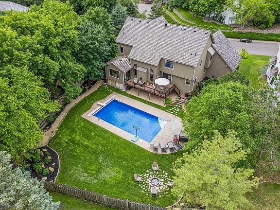 Amazing property in a supreme West Bloomington location. Located on a cul de sac just north of the river bluffs is this unique two story home with a pool. An entertainer's dream home! Walk into soaring vaults throughout the main level. The main level features an updated kitchen, floor to ceiling fireplace, a sun room, and versatile spaces. Currently set up with 2 offices, but these spaces could be used as a formal living room and a main level bedroom! Step out onto the deck overlooking the beautiful backyard. Here you'll be right on top of the pool, patio, and green spaces. A classic catwalk separates the primary bedroom and 3 additional beds for privacy. A true owner's suite with dual closets, vaulted ceilings, and separate tub/shower in the owner's spa-like bath. The lower level has a wet bar, game room, large rec room, and exercise area. Walk-out to a nice sized patio with a basketball hoop. All of this is a wonderfully convenient location walkable to parks, trails, and shops.