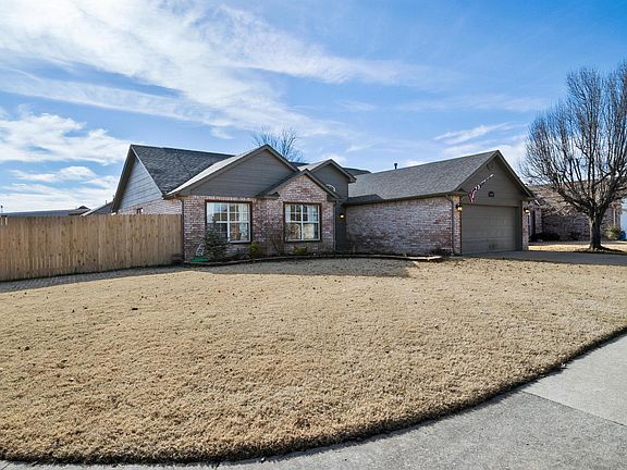 Great 4 bedroom 2 bath 2 car garage. Corner lot with new privacy fence and great shed. Split floor plan with open kitchen and cozy fireplace. Master bath has separate shower and whirlpool tub. Many walk in closets and great storage. Abundant natural light in this north facing home. Roof new in 2019. Owasso school district.