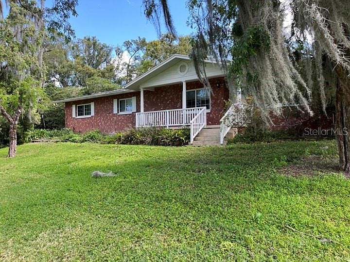 1973 block and stucco home with 4 bedrooms and 2 bathrooms and a 720 sf workshop/garage on lovely on approximately 5 acre lot on the hills of Fort King Road.
