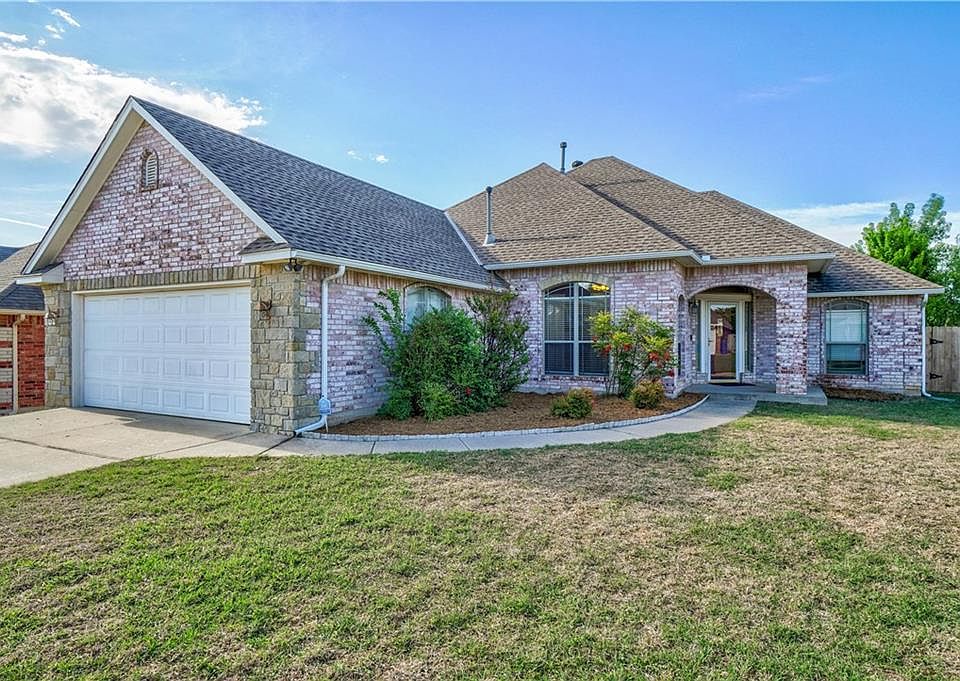 Tucked away in the quiet Stone Creek addition, this home sits on a large corner lot just a short walk from the neighborhood swimming pool. The floor plan is welcoming with tall ceilings and natural light. Immediately off the impressive entry is a large flex room that leads to the spacious kitchen. The functional breakfast bar flows seamlessly into the dining area. Tall ceilings continue to the open living room of which the focal point is the beautiful mantle over the gas fireplace. The master suite has built in shelving, double sinks, a walk in/wrap around closet, a jetted tub and a walk in shower. On the other side of the home are two guest bedrooms with a shared full bathroom. The roomy utility room leads to the two car garage that has storm shelter. Enjoy the south facing covered patio along with mature trees. This home has priority access to Tinker AFB and Boeing with a short 6 mile drive as well as the urban core of OKC with a 14 mile drive. Welcome to your new dream home. 2020-05-08