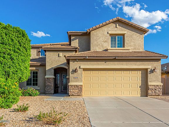 This renovated home in the Bella Via Community boasts modern features and a well-designed outdoor space, making it a great option for comfortable living and entertaining. This property has undergone $91,000 in renovations and offers a blend of modern elegance and practicality with its 4 bedrooms and 3.5 bathrooms. The house features an open floor plan that allows for abundant natural light to illuminate the space. The high ceilings and wood-look flooring add to the overall aesthetics. The Gourmet Kitchen is the highlight and the heart of the home. Featuring: granite countertops, elegant cabinets with crown molding, a mosaic tile backsplash, stainless steel appliances, pendant and recessed lighting, pantry, and a center island with a breakfast bar. It's a great space for cooking and entertaining. There is a versatile loft that can serve as office space or a game room, providing additional space for various activities. The primary bedroom is carpeted for comfort and includes a cozy sitting nook. It also has an ensuite bathroom with dual sinks and a walk-in closet. The backyard has been meticulously designed and offers a covered patio, a built-in BBQ and a shimmering pool with a spa. A perfect outdoor space for relaxation and outdoor gatherings. The home is located in the sought-after Bella Via Community, which offers various amenities and is a desirable neighborhood.