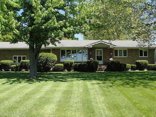 For details and more pictures, call listing Agent: Jaimie Lenardson at (269) 429-6666 or http://cressyeverett.com/14030100 Baroda Township, Bridgman Schools, close to Lake Michigan, Sandy Beaches, Wine Country, Golf Courses, Shopping and many other local attractions. This peaceful 10 acres has one acre of meticulously maintained blueberries, Walnut trees, Pine trees, a grass yard and tillable land. The home sits high enough to see the surrounding properties and several miles beyond. This one owner, all brick ranch home was been well cared for and remains in great condition. There are three bedrooms, one full bathroom, one bathroom with a shower, a large living room with a natural burning fireplace, eating area and kitchen. The full basement is dry, has a recreation room with a fireplace, storage area and a work shop area. This 10 acre parcel measures 660 x 660 and could be split into two 5 acre parcels with municipal approval.