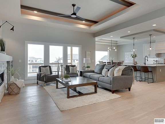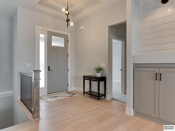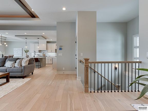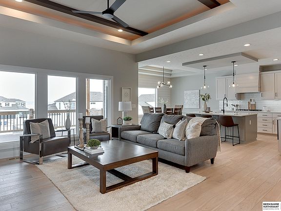 Showcase Homes split bedroom ranch plan on a west facing, walkout lot in the newest Bennington neighborhood, Newport Vista & features a 4 car garage. You will love the finish quality & high end upgrades throughout. Modern kitchen w/ wood hood, gas cooktop, custom shelving, huge walk-in pantry w/ coffee bar, large island w/ apron sink & quartz countertops, & hardwood floors. Beautiful great room w/ vaulted ceiling, linear fireplace w/ built-in cabinets, & shiplap wall. Private primary suite w/ large walk-in shower, double vanities w/ hanging light fixtures, & it connects to the laundry room. Impressive lower level w/ 2nd fireplace in rec area & wetbar w/ front island, 2 bedrooms w/ walk-in closets, 3/4 bathroom, & nicely sized storage room. Awesome covered deck & patio. Photos are of the same floor plan but another completed Showcase Homes ranch. House is currently under construction & will be complete mid-September.