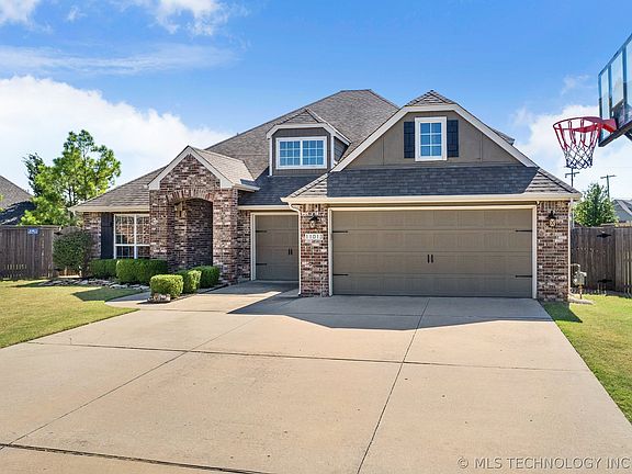 Executive home on large lot with inground gunite pool perfect for hours of family fun and entertainment built in 2017. Large tile entry. Office with french doors. Huge greatroom with brick fireplace opens to large country granite kitchen. Formal Dining and Breakfast Nook. Lots of windows with natural light. Lovely Master with Huge Walk-in Closet. 2 Additional Bedrooms Down. 4th Bedroom Up with private bath could be Gameroom. Inside utility room. 3 car garage. Storm Cellar in garage floor can fit 6-8 people. Gunite sports pool with umbrella shallow sitting area has heater and chiller for total enjoyment in the Oklahoma hot and cold temperatures. New HVAC units 2020. HOA dues $550 annually provide pool, parks, trails, splash pads for the community. Easy access to HWY 75 & 169. MUST SEE!!!