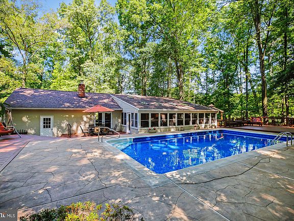 Welcome to this serene home located on 1.5 acre secluded lot with abundant outdoor living space. This amazing home offers 3 bedrooms and 3 full baths with hardwood flooring in living and dining room. Entertain friends and family by the In-ground heated pool (18x36) and expansive decking that has been freshly stained. Remodeled kitchen with 42 inch cherry cabinets, Corian counters and stainless steel appliances. Sizable sun-filled rear addition with walls of windows. Fully finished lower level with full bath and cozy fireplace. Freshly painted and new carpeting. Move-in ready! Don’t miss out! Come see for yourself!