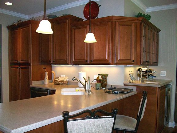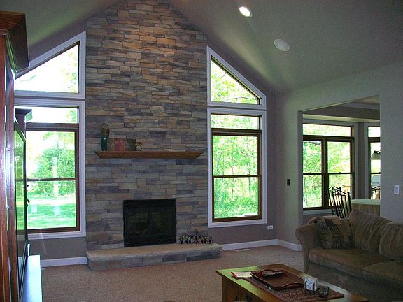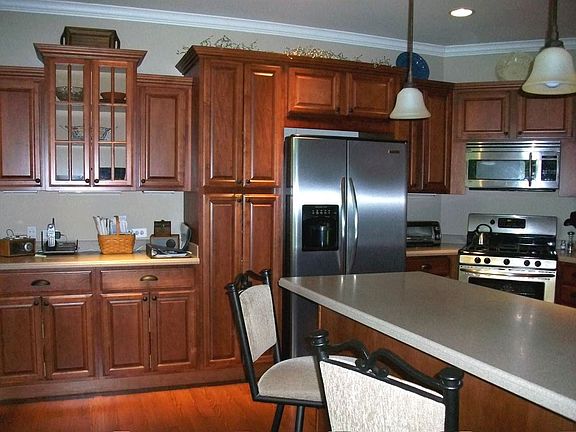 Beaut home w/lots of upgrades! Owner hates to leave this home on a stunning wooded lot. Enjoy the birds singing & the squirrels playing from your deck or paver patio. Walk in & you'll be greeted with HW & 9' ceilings. Foyer opens to vaulted FR w/2 sty stone FP. Pretty kit w/lots of maple cabs, corian, stainless, wet bar w/frig, & EAS w/pic window to enjoy your view. Room to play in the open area of yard. Full bmt.