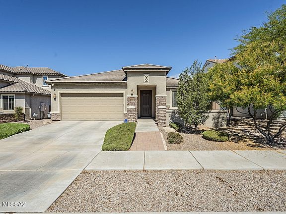 Great Eastside subdivision, great one-story home & GREAT PRICE! 3 bedrooms/2 baths plus Den & Media/Bonus room. 2137 sq feet. A Pulte energy efficient home with builder upgrades. Extras include 9 ft ceilings, 8 ft sliding door, Media/Bonus room & the Chefs kitchen option. Kitchen features granite counters, 5-burner gas stove, stainless steel appliances and additional cabinetry for all your culinary ventures. Builder installed energy saving solar panels. New AC May 2025. Great room concept and 75'' TV with surround sound. Primary bedroom in a split bedroom plan. Bath with dual sinks & walk-in shower. Covered paver patios in both front & backyards. 2-car Garage. Sierra Morado Subdivision offers Community pool, multiple parks, dog park, basketball & sidewalks. Award winning Vail schools.