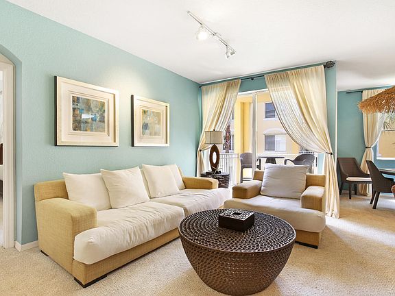 Fantastic turnkey unit at the Residences at Legacy Place.AVAILABLE FURNISHED . This 3 bedroom 2 bath unit has two balconies. Open floorplan living boasts a living room/dining room combo with carpeted floors and sliders to the balcony. The kitchen has wood look porcelain tile flooring, a full complement of appliances, wood cabinetry, pantry, room for a casual dining table, and sliders to the balcony. Large master bedroom with carpeted floors and attached bath with wood look porcelain tile floors, double vanity, and large shower. 2 additional Guest Bedrooms have carpeted floors and reach in closets. They share a full bath. Laundry room with GE washer and dryer. Additional large storage area in foyer.