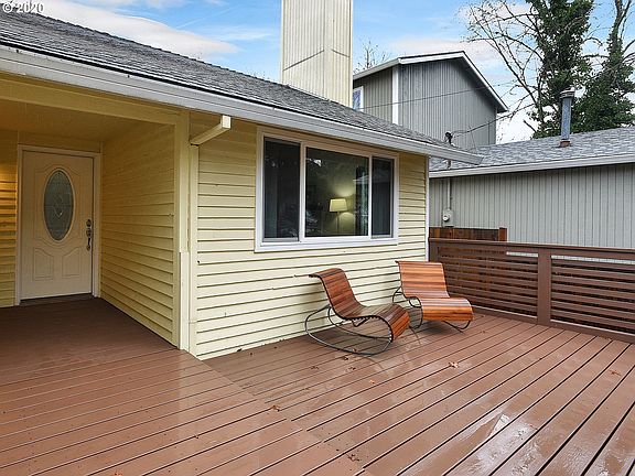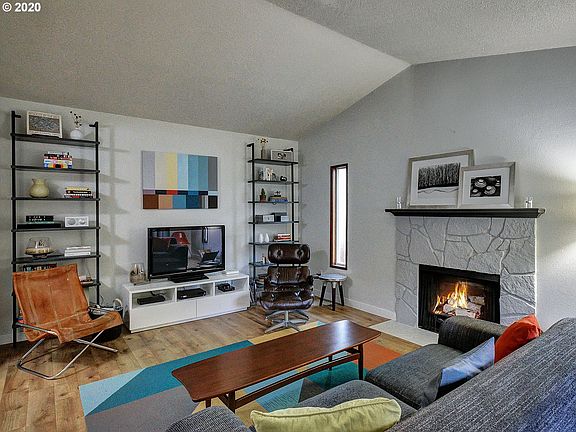Darling ranch in easy-access location close to everything. Open, flowing floor plan features wood fireplace. Vaulted ceilings in living & dining rooms. New laminate flooring throughout. Brand new eat-in kitchen with updated cabinetry, flooring, quartz counters, & all new appliances. French doors open to deck & large yard. Updated bathrooms including tile floors & new vanities. Includes all appliances. Air conditioning. [Home Energy Score = 4. HES Report at https://rpt.greenbuildingregistry.com/hes/OR10105859]