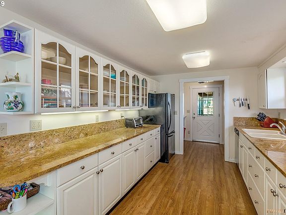 Spacious home just minutes to the beach, Bay and State Park sits on two tax lots providing a large .77 acre lot looking out to the green space and mountains. Features main level master suite with walk in bath. Updated galley kitchen connects to dining area, living room w/fireplace and sunny den. Upstairs offers large bedroom, third bedroom and office/reading nook. Enjoy outdoors with a glass shielded deck, green house and more.