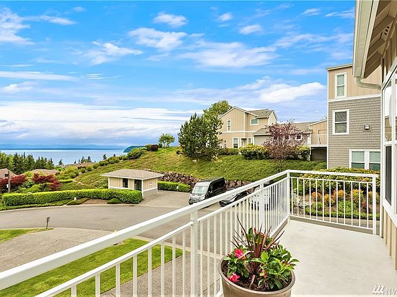 Wake to beautiful views of Olympic mountains over the sound, in this former model townhome w/ loads of upgrades, including tastefully updated kitchen & bath, and new AC. With views from office/(2ndBR), LR, and MBR this is one to see. The patio offers a natural setting to relax and entertain. Quality finishes throughout! Lower bonus room is great for theater, office, or added storage.
