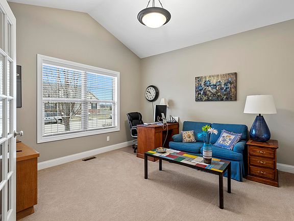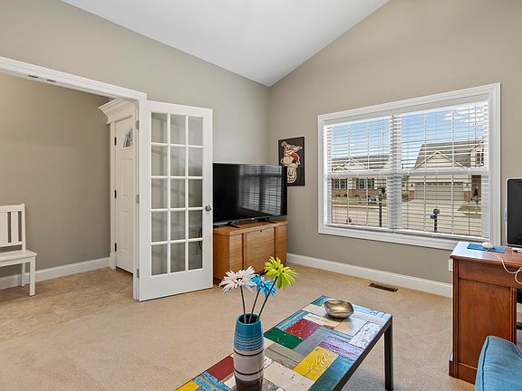 Beautiful 3BR/2BA trail-side, ranch style, zero lotline townhome located in popular Trail Crossing. Backing right to the Rock Island Trail, this beautiful ranch is immaculate, boasting upgraded kitchen cabinetry from Hamptons, granite tops, large island in the dinette, formal dining, vaulted ceiling great-room with gas log fireplace, spacious primary with a nice sized bath & walk-in closet, and main floor laundry with utility sink, The third bedroom has french doors, vaulted ceiling and is currently used as a den/office. The garage was expanded a bit for storage. The slider from the dinette leads to the patio and backyard which is beautifully landscaped, accentuating the tree-lined backdrop. The basement has 9' walls, 2 egress windows, a bath rough-in and could be beautifully finished.