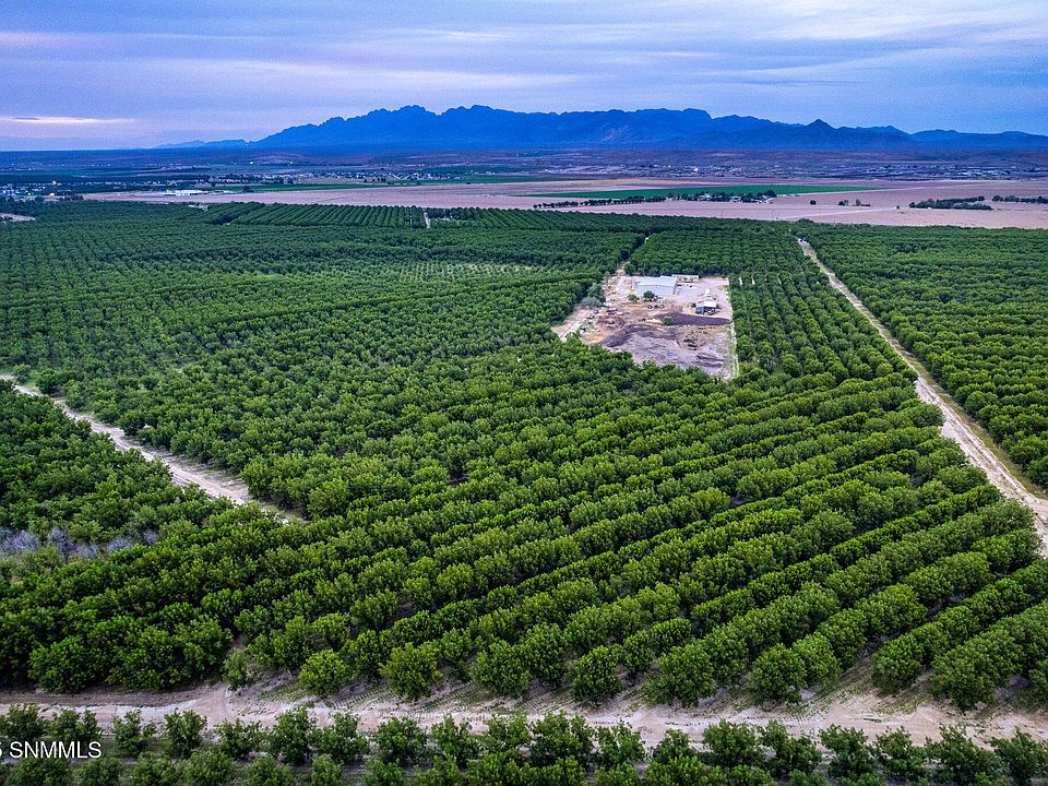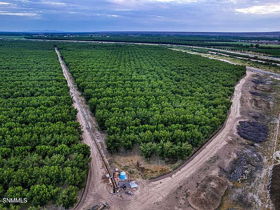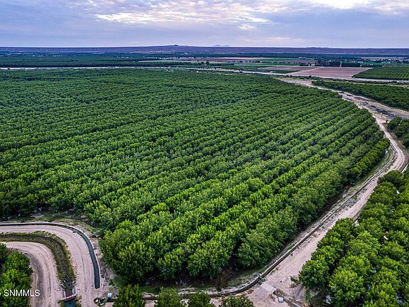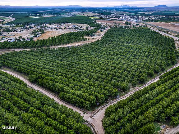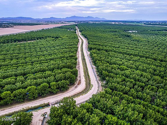 Welcome to this exceptional 554+/-acre income producing pecan farm in the heart of Dona Ana County, New Mexico. Situated in Mesquite, this highly productive property offers both scale and stability, making it an outstanding agricultural investment. With 535+/- acres of mature pecan trees, the farm is ready for continued success for years to come.Water is well distributed throughout the property, with ground and EBID surface water rights, seven irrigation wells, and two domestic wells. The farm is equipped for both sprinkler and flood irrigation, supported by a network of concrete and dirt ditches. This infrastructure ensures efficient and reliable water delivery, a cornerstone for thriving pecan production.The property also includes a large farmyard with extensive improvements. A 7,600-square-foot storage warehouse and a 3,300-square-foot equipment building provide ample space for farm operations, while additional room is available for equipment parking. The farm also features a mobile home and an