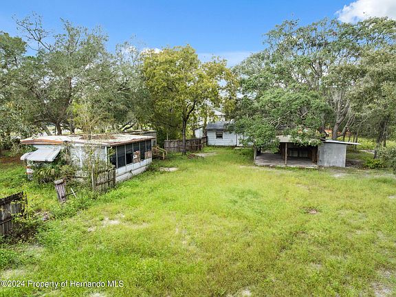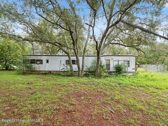 We're not saying this is the home that Father Time forgot. This is the home that Father Time beat with a tire iron. Normally, this is where we talk about ''channeling your inner Bob Vila'' and ''good bones'' and all that jazz. Honestly, though, the thought of trying to rehab this 1973 mobile home makes us want to hang up our collective licenses and sell cupcakes or something. We're pretty sure zombies wouldn't even want to nest here, but it's entirely possible that some of the Florida wildlife has, because a number of the windows are missing or broken. It brings a whole new meaning to ''open concept''. One benefit you can look forward to is having a fairly low power bill; the downside to that is it's because there's no HVAC as far as we can tell. Don't bother breaking out your best cast iron pans to use in the kitchen, because the makeshift counters would probably collapse under the weight. Although the cabinets look fairly sturdy still, keep in mind that they've probably been around since Nixon was in office. Hopefully your tetanus shot is up to date as most of the flooring is bare plywood. A truck stop would almost certainly have safer restrooms - at least their shower doors usually work...and are actually attached. But wait, that's not all! Along with the original trailer, there are two outbuildings on this property. The first is a two car detached garage that could have been a mancave or cozy guest house at one point. It has plumbing for a bathroom, but that's about as far as construction ever got. There's also a detached carport with a makeshift workshop where we can envision the cast of the Walking Dead refusing to film. To be absolutely frank, the value here lies with the land. It's a truly lovely 1.1 acre corner lot dappled with oak and shade trees. The impact fees are paid, and Knuckey Road is paved. It's an idyllic rural setting in a neighborhood with no HOA fees, but it's just off US-19 for easy access to Homosassa, Tarpon Springs, or Clearwater. If sobbing in a corner while spending an eternity making repairs isn't particularly appealing, we would perhaps recommend tearing it all down and rebuilding from the ground up. You'd probably earn brownie points with your new neighbors, at least.