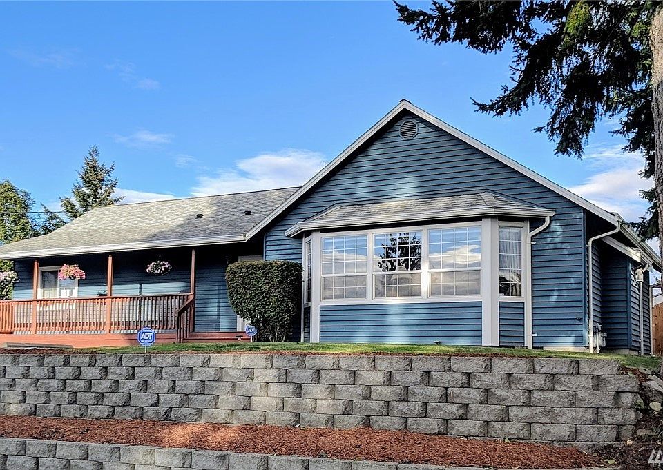 Perched on the top of the hill above Seola Beach is this meticulously well kept ranch rambler with 3 bedrooms, two bath. A generous, open living space with vaulted ceiling makes way to a private oasis in the back yard with water feature and paved patio. The perfect mix of function and comfort; finished 2+ car attached garage, additional storage and efficient gas heat with double pane vinyl windows. Enjoy sunset mountain and Sound views from the living room. Ample RV/boat off-street parking, too!