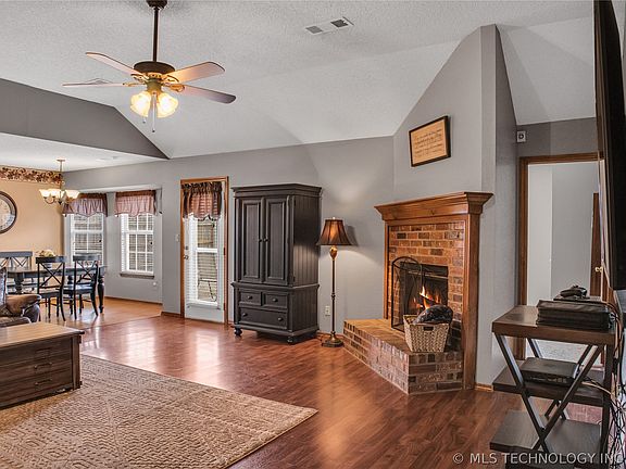 BACK ON THE MARKET - No fault of the sellers. Here's your 2nd chance. Owasso Schools - come and check out this beautiful home located in a prime- up and growing location, Country Estates. This updated 3 bedroom (which was originally a 4 bedroom - then opened up a wall to make a very large "suite" for one of the rooms) could easily be converted back or just used for a bedroom / office combo... the living room is super spacious with a gas fireplace and is open to the dining room. The kitchen has been updated with granite counter tops and appliances. Walk-in closets in most rooms and a double sink in the master bath. The only carpet in the house is in the closets, the rest of the home is laminate flooring and tile. It also has an upgraded garage door with excellent curb appeal and lots of attic space and a shed for storage. The backyard has great potential to add some landscaping / flowers as it already has a beautiful area with sandstone and a beautiful Morning Glory Maple tree as the centerpiece. The Ring doorbell and cameras do not stay with the home. Come see this beauty for yourself!