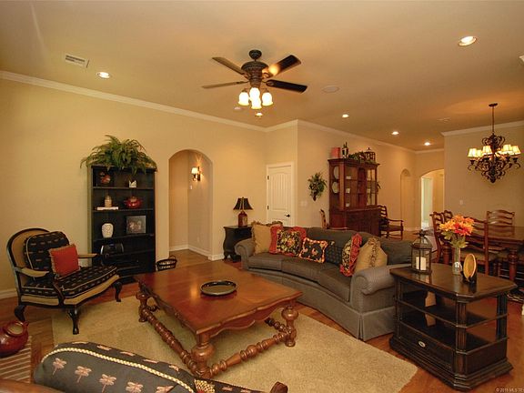 Luxury one-level home. Spacious, open floor plan. Formal dining and living room (or 3rd bed). Gorgeous hardwoods throughout. Large kitchen with granite and island that opens to living area. Spacious master w/huge master bath and lots of closet space. Split bedroom plan. Many upgrades - lighting, crown molding, Sprinkler System, hot tub hook-up, security doors, and more. Covered patio. Bixby Public Schools. Neighborhood pool.
