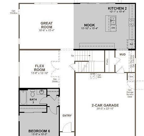 Explore this inspired Ammolite home, ready for quick move-in on a homesite boasting front yard landscaping and driveway pavers! Included features: an inviting covered entry; a bedroom and bathroom in lieu of a study and powder room; an alternate kitchen layout offering 42' cabinets, quartz countertops, stainless-steel appliances, a roomy pantry and a center island; a welcoming nook; a relaxing covered patio with gas pre-plumb, a lavish primary suite showcasing a generous walk-in closet and a private bath with cultured marble countertops; a convenient laundry room with bonus storage closet and sink pre-plumb, a mudroom and a 2-car garage. This home also offers 7x22' stone tile flooring, and ceiling fan prewiring in select rooms, plus much, much more!