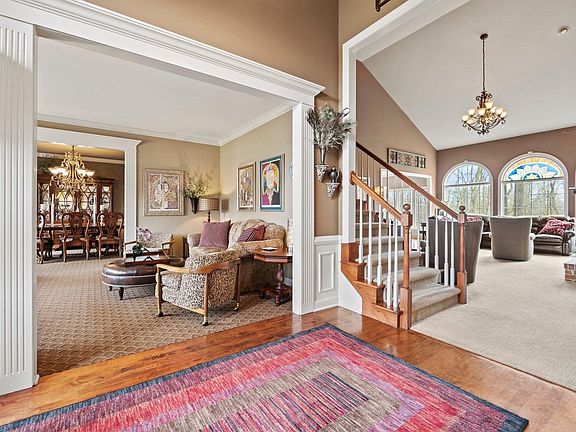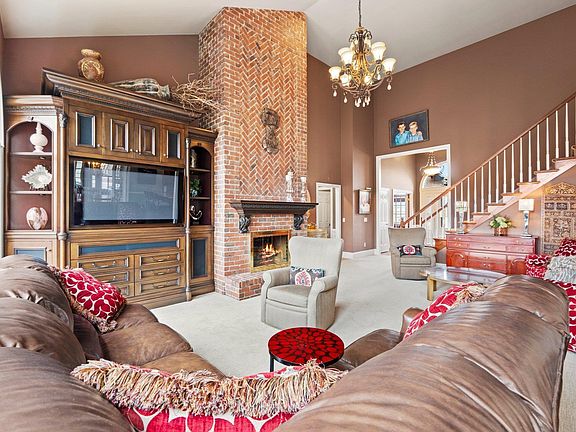 - Sound System, Bookcases, Ceiling-9+, Ceiling Fan(s), Countertops-Solid Surf, Eat-in Kitchen, Entrance Foyer, Kitchen Island, Natural Woodwork, Wet Bar, Main Level Bedroom Suite, Formal Dining Room, Great Room