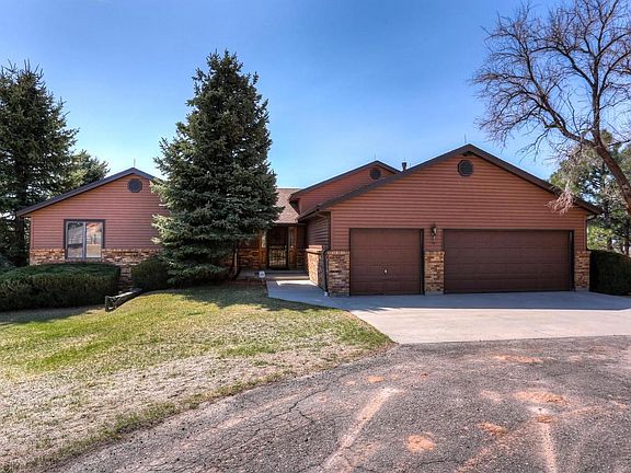 This gorgeous home sits on 5 acres with incredible views of Pikes Peak and the front Range! 4 Beds, 3 bath with 3 car garage just waiting for your personal touches! Walk into the welcoming sunken Family room with wall to wall windows where you will enjoy abundant natural light, gas FP, vaults and open from the HUGE Kitchen! The Eat-in-Kitchen features plenty of cabinets, granite counters, SS appliances, and opens w/French doors out to Custom, Vaulted Trex 23' deck with incredible views, even the deer will say good morning! Master Suite w/2 more Beds a 2 Baths w/radiant heat floors, all on the main level! Lower level is featured as Master Suite w/ 3/4 bath, but can be used as second play area, man cave, or add a pool table and TV's for Entertainment area. Walk-out Lower level also features a sun room, and private patio! This coveted neighborhood is close in to Parker and a Horse Property.