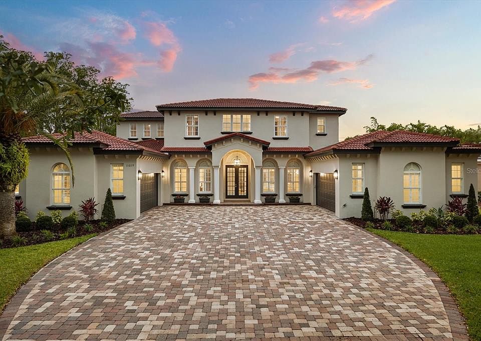 Meticulously upgraded and thoughtfully designed, this expansive Mediterranean estate rests gracefully on a .34-acre cul-de-sac lot in the prestigious guard-gated community of Lake Butler Sound. Surrounded by some of Windermere’s most spectacular residences, this home offers unmatched security, privacy, and convenience—just minutes from Disney, downtown Windermere, and Orlando’s renowned Restaurant Row. An oversized driveway and rare split 4-car garage establish a striking first impression that continues seamlessly throughout the property. As you step through double doors, a grand foyer welcomes you with soaring ceilings, elegant fixtures, and sunlit spaces that transition beautifully into the heart of the home. The formal living room opens through French doors to tranquil outdoor views, while the richly detailed dining room adds a touch of classic refinement. Flowing naturally into the great room, the chef’s kitchen showcases custom cabinetry with white oak accents, quartz countertops, Viking appliances, double ovens, and a generous walk-in pantry—blending style with everyday functionality. A fully built-out laundry room and a chic pool bath extend the home’s thoughtful layout. The primary suite is a sanctuary of luxury, complete with tray ceilings, abundant windows, and French doors leading to the lanai. Its spa-inspired bath is adorned with dual floating vanities, wall-mounted faucets, a soaking tub, and an oversized walk-in shower—creating the perfect balance of indulgence and serenity. A dedicated office with French doors completes the main floor, while upstairs you’ll find three spacious bedrooms paired with two fully updated bathrooms, offering both comfort and flexibility. Outside, an expansive screened lanai overlooks the crystal-blue pool, recently resurfaced in 2024, and framed by lush landscaping that creates a private resort-like retreat. Whether entertaining guests or unwinding in peace, this outdoor setting delivers effortless beauty and low-maintenance living. With nearly 4,000 sq ft of interior living (over 5,000 sq ft total), and a suite of brand-new updates—HVAC, water heater, pavers, and pool finish (all 2024)—this residence feels like new. Schedule your private showing today, and experience the essence of Windermere luxury.