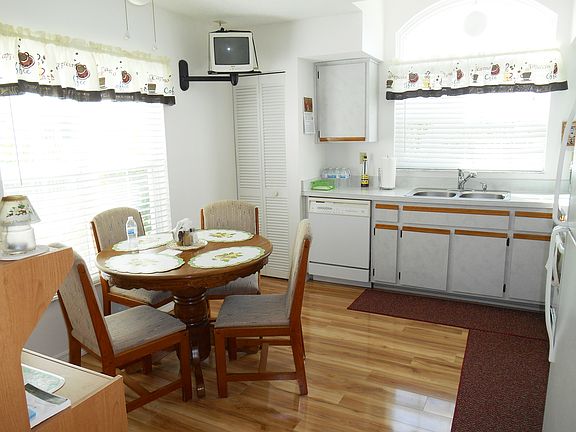 Located in the Golf Course Community of The Gardens at Seven Hills you will find this immaculately kept maintenance free Villa. Featuring an open floor plan with cathedral ceiling, great room, dining room, eat-in kitchen, 3 bedrooms, 2 full bathrooms, inside laundry room and an attached 2 car garage complete with a door opener and pull down stairs for attic access. For the occasional chilly night there's a double sided wood burning fireplace. Skylights allow for natural light. All appliances included, even the washer and dryer. Beautiful laminate wood flooring throughout the main areas. Large walk in closet in master suite, plus dual sinks, walk in shower and a jetted tub. Sliders off both sides of the great room lead to 2 private screened patios, one with a storage closet/shed. A Must See