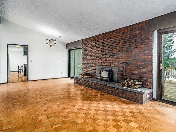 Almost 5 acres on the spokane river! This home features 4 great bedrooms, 4 bathrooms, 2 brick wall fireplaces and 2 large family rooms. Tons of natural light and great close up views of spokane river! Just minutes from town this 1969 home has great character and style. Huge deck, with outside fireplace built in to enjoy the river & view. Home also features: 2 car garage, large shed, large glass sliders, high ceilings, daylight basement & spa w/ hot tub! This large waterfront lot is rare, come take a look!